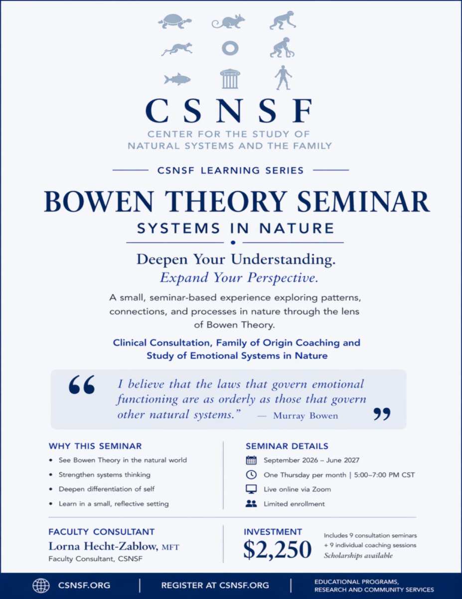 A small, seminar-based experience exploring patterns, connections, and processes in nature through the lens of Bowen Theory.